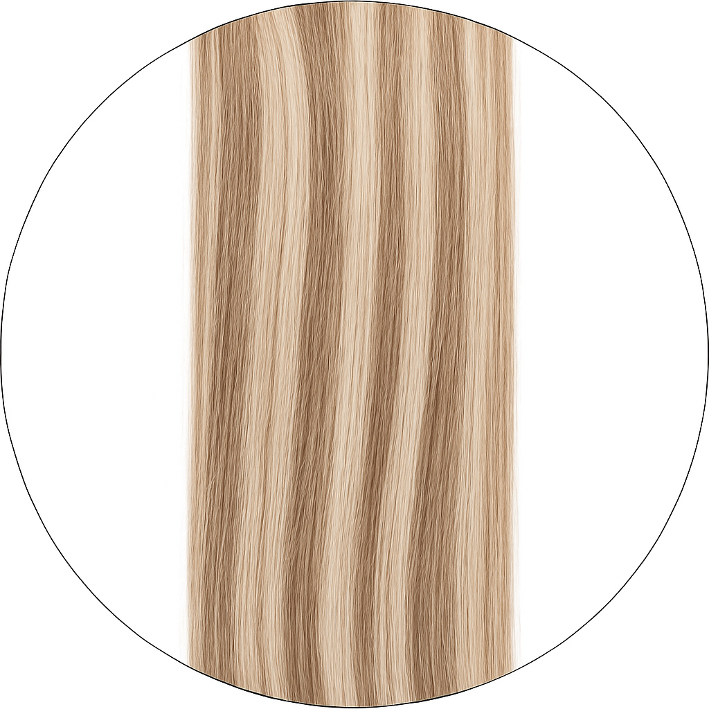 • Het haar bevestigd met clips, micro ringen of lijm (die niet inbegrepen).