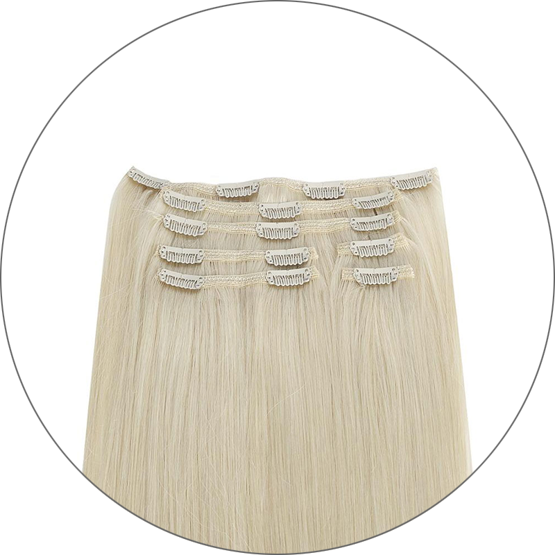 • Het haar bevestigd met clips, micro ringen of lijm (die niet inbegrepen).