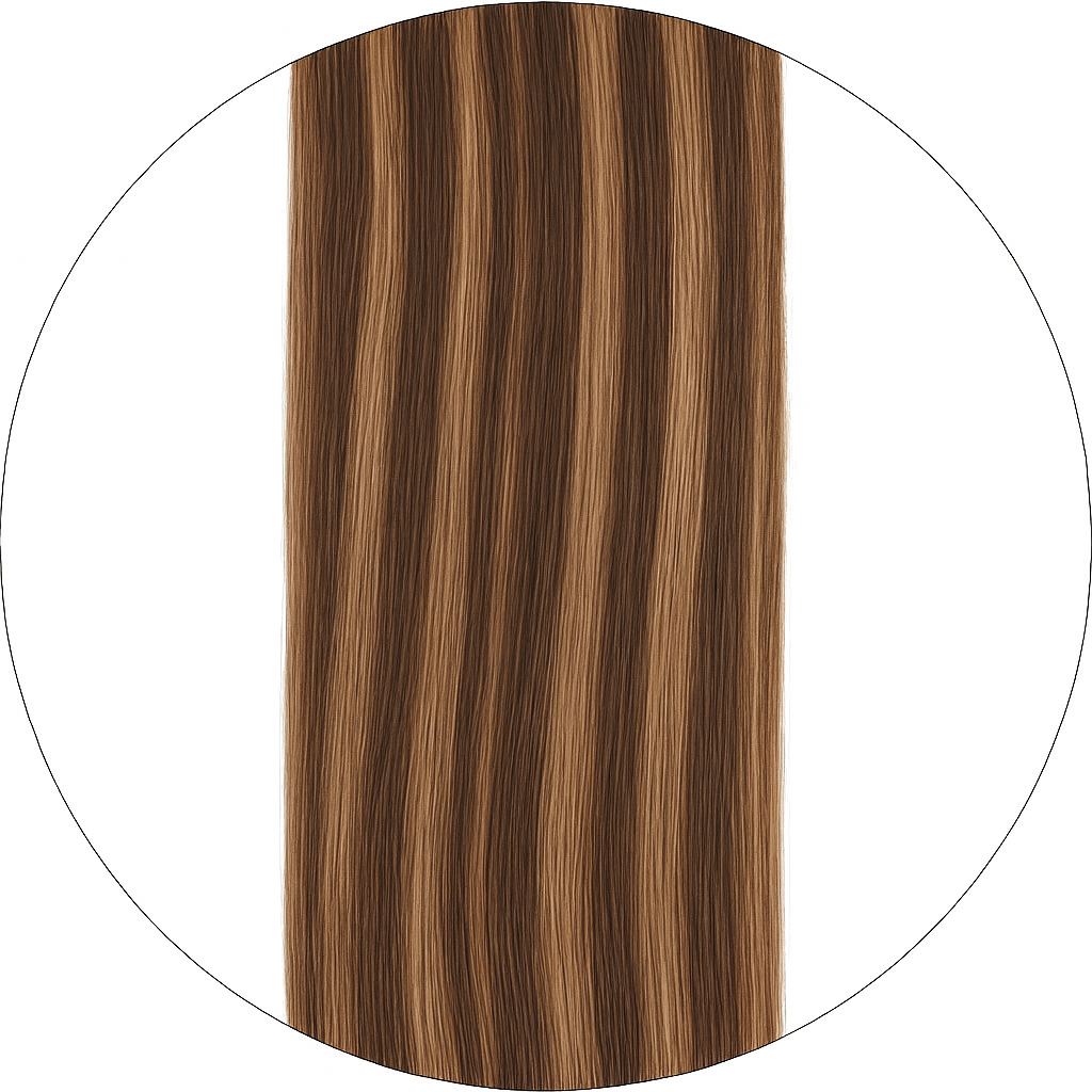 • Het haar bevestigd met clips, micro ringen of lijm (die niet inbegrepen).